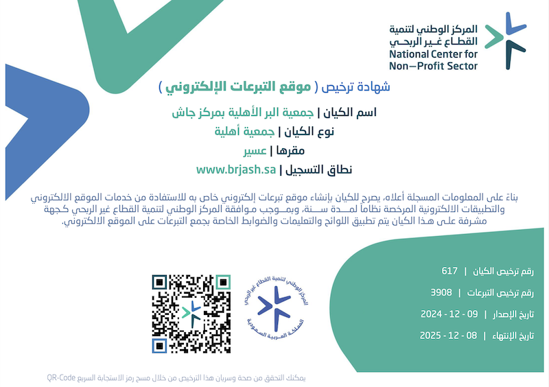 جمعية تهتم في رعاية الأيتام والمحتاجين والأرامل والمطلقات والمهجورات وذوي الإحتياجات الخاصة وأسر السجناء وذوي الدخل المتدني داخل نطاقها الجغرافي وهو مركز جاش والقرى التابعة له ال مبارك – المشاش – الروضه – الرفايع – البرقاء – السفح
